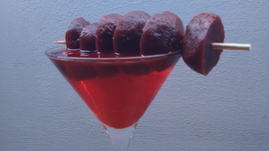 This is a savoury, piquant and nicely coloured martini for beetroot lovers, with just a splash of added fire.