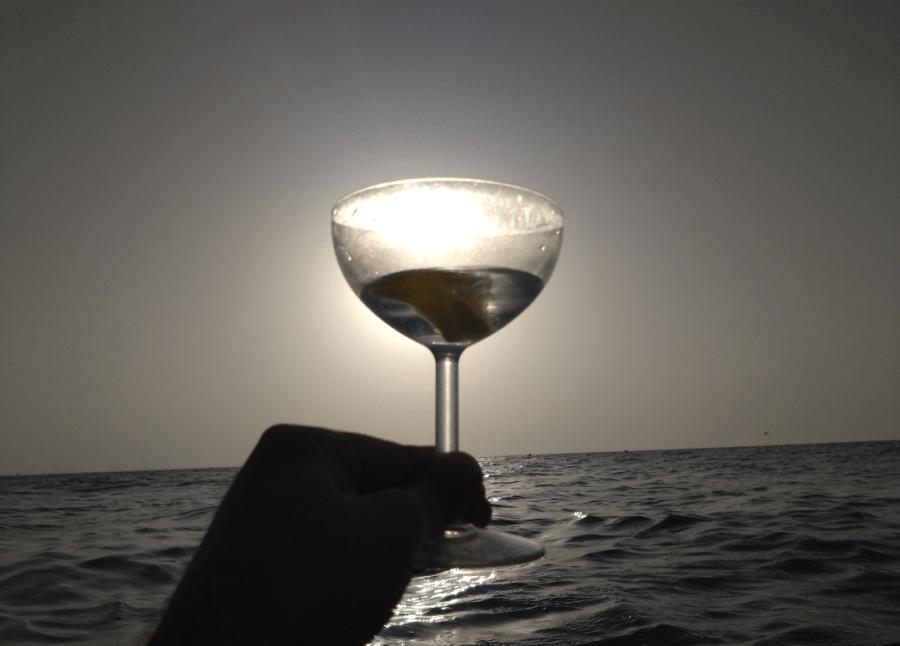 Note that you can take your drink into the sea for photographic purposes, but you are not allowed to drink in the sea.