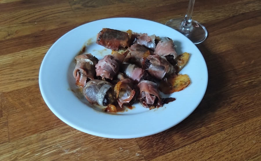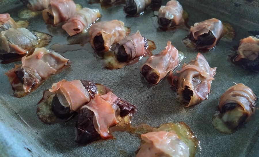 El trozo de la verguenza – Spanish for ‘the piece of shame’ refers to the last bite to eat on a shared plate. If you make these prosciutto-wrapped cheese-stuffed prunes for your guests it won’t be long before they find themselves at el trozo, I assure you.