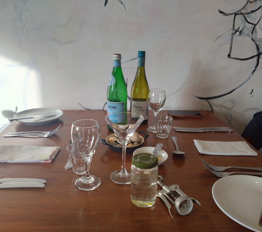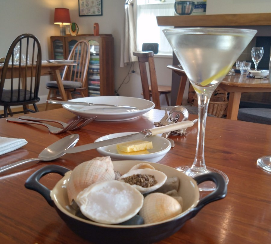 We were seated, given beautiful homemade bread and butter to start and I poured the drink, using a martini glass I’d also brought from home.