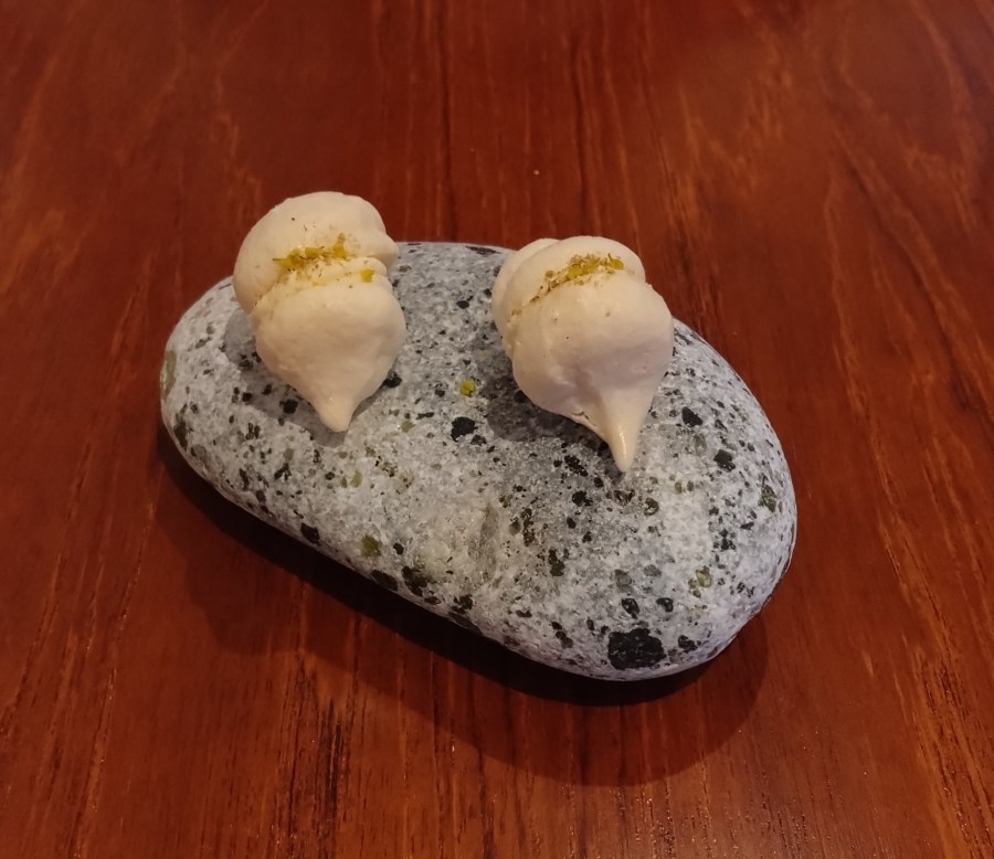 We finished the meal with a delicious and beautifully presented selection of miniature custard creams and the last word of the night – the hogweed seed and fennel meringue: what a surprising delight.
