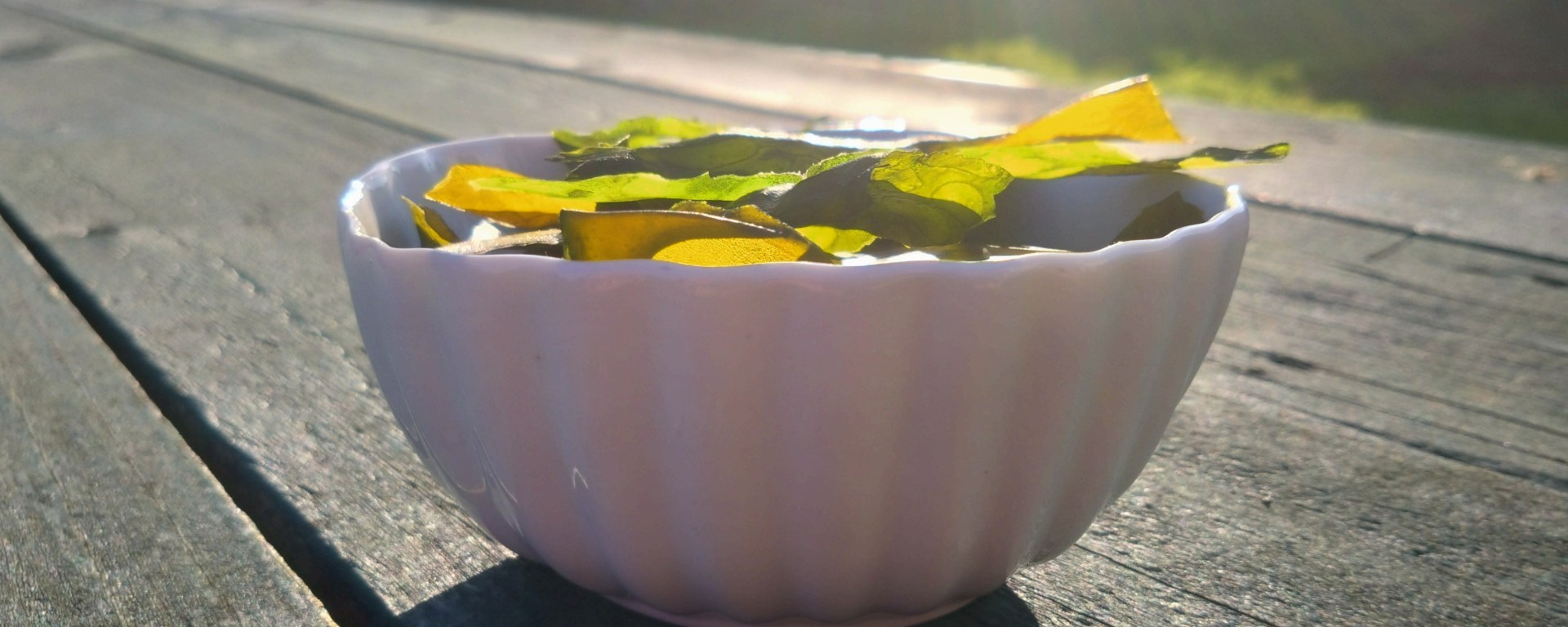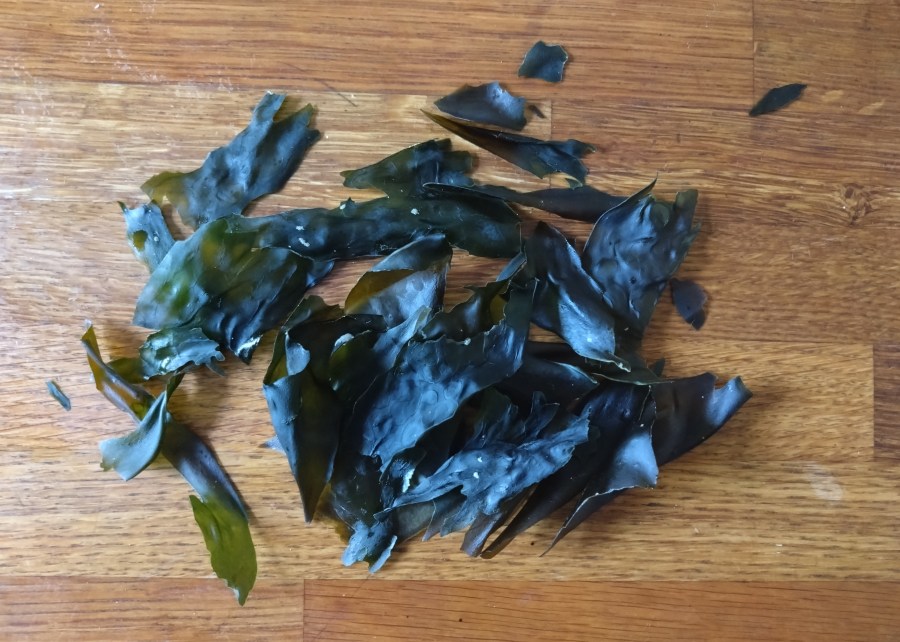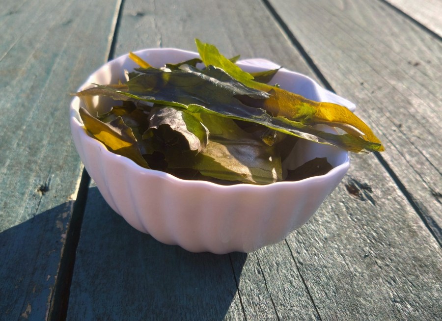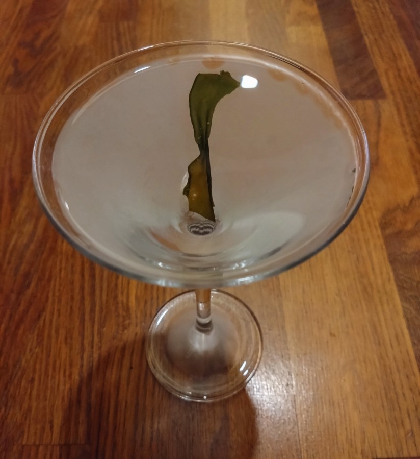 Kelp is a super food, and very tasty. If you can (sustainably) forage it nearby, this is an easy way to enjoy it with a drink.