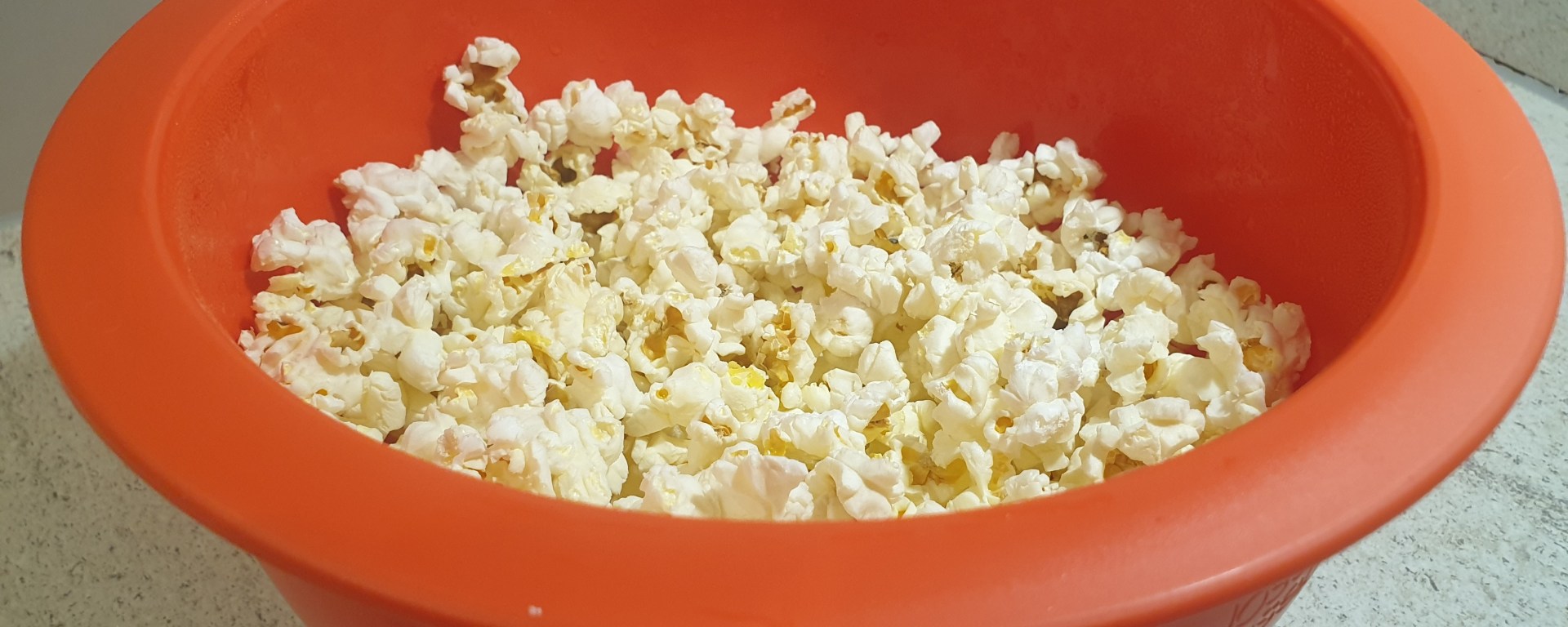 Use the standard method from the Joseph Joseph popcorn bowl (add the kernels and a neutral oil then microwave), or cook the popcorn using whichever method works for you.