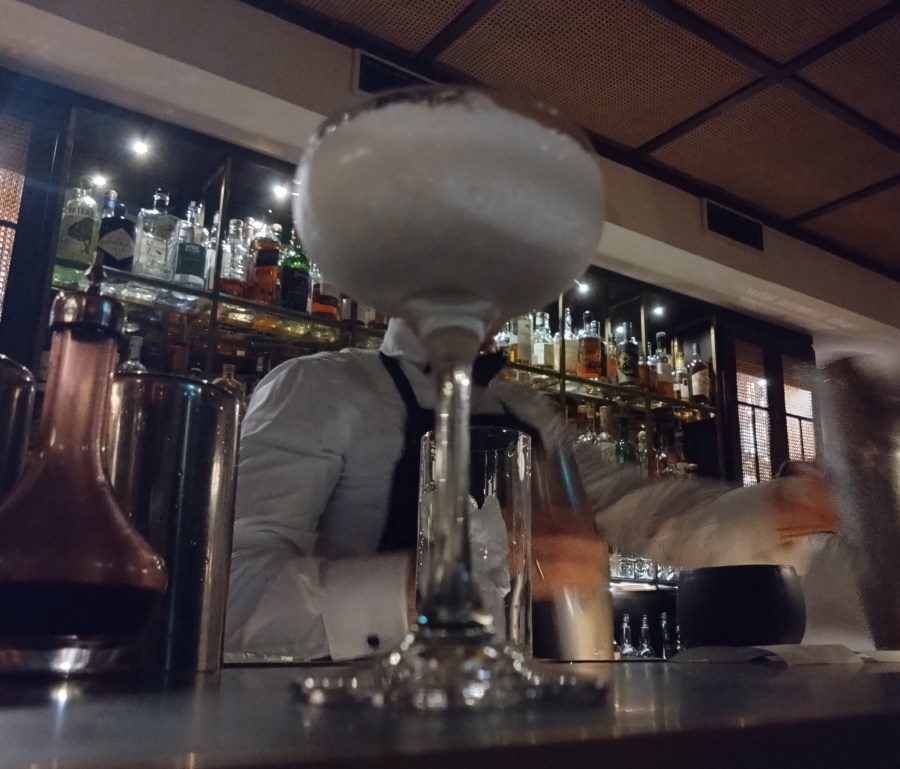 Upon returning to the bar, refreshed, dry and warm, I was placed at what I firmly believe to be the best seat in the house: right by the service area. I had a front row ticket to the theatre of the professionals at their craft, as well as a view of the length of the bar and all the extra cast members entering and exiting the stage through the night.