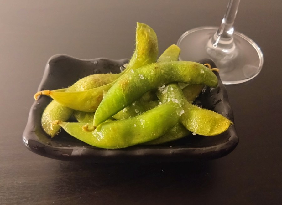 Edamame or soy beans are a pretty healthy snack. They also just happen to taste really good, either on their own but especially when accompanying booze.