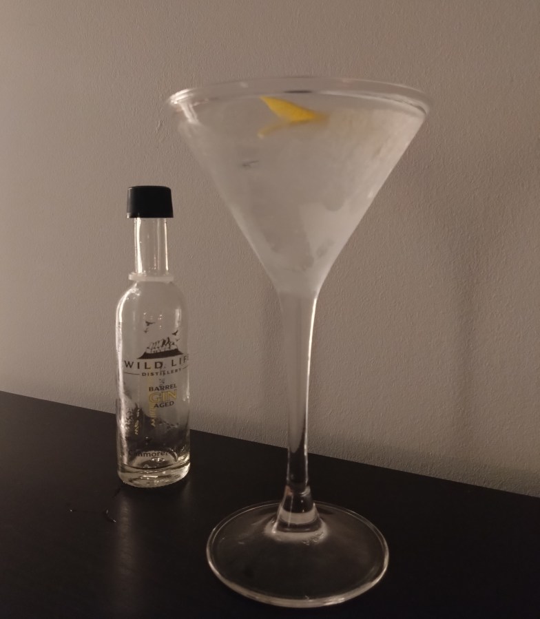 I started with the classic gin. After removing it from the freezer I poured it into a frozen glass and took a small sip of it neat, before adding the tiniest smidgen of vermouth and a fleck of lemon peel.