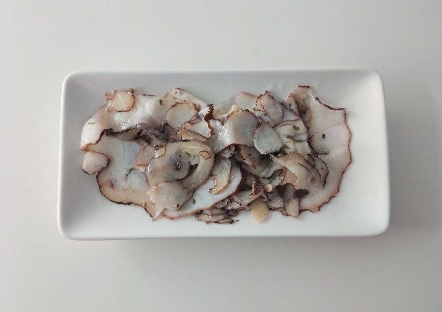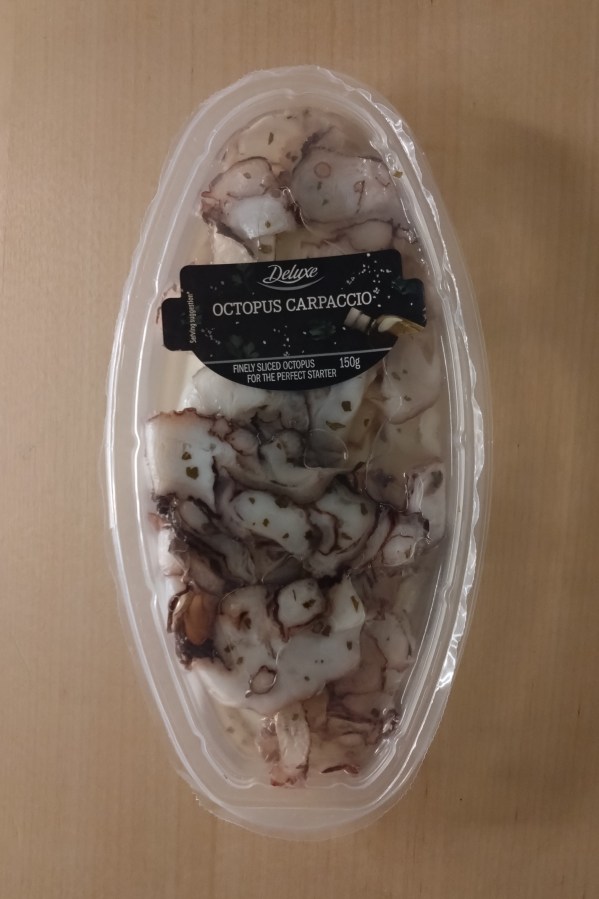 It’s also only available on a sporadic basis in Lidl. Whenever I see it I buy a couple of packs and savour them. Indeed octopus in any form should always be savoured.
