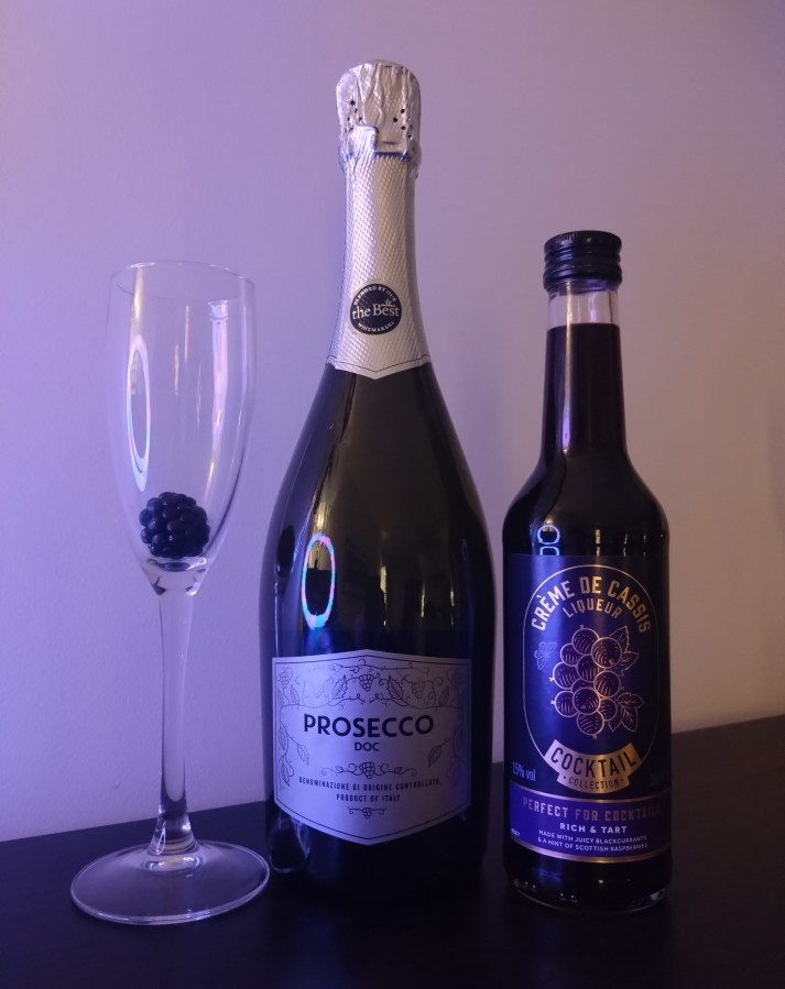 The sparkling wine should of course be kept in the fridge for several hours, as should the Crème de Cassis, simply to cool them down.
