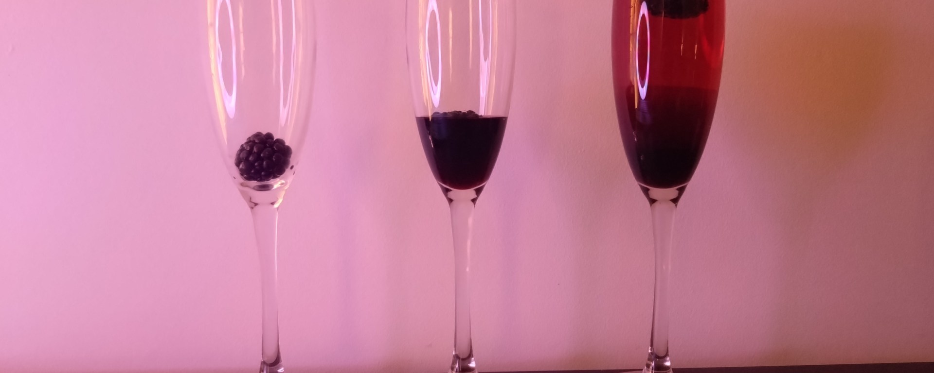 If you are serving these to a large group of people, you can pour the first portion of sparkling wine and Crème de Cassis first, so all the glasses are ready, then top them up with the bulk of the sparkling wine immediately before serving them, or when your guests arrive – especially if they don’t all arrive at the same time.
