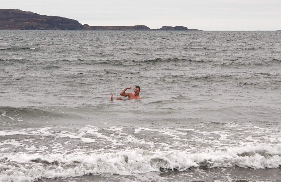 Right, this is a pain point, but it really, really works. The sea temperature varies little around the Hebrides (which for Scandi Jan you can rename the Suðreyjar or ‘Southern Isles’ as they were known by our Viking forebears). It’s usually around 9-10⁰C (48-50⁰F) which is actually often warmer than the air.