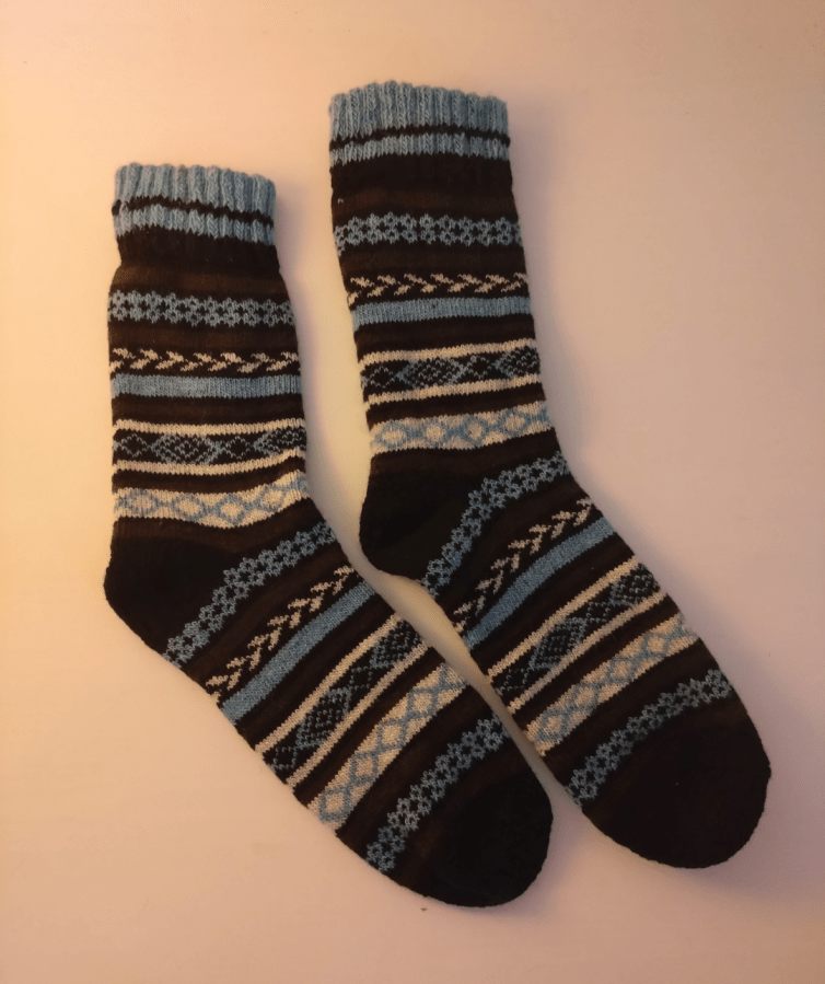 It’s cold. Our house is cold. Our feet are cold. Nice warm socks, especially cosy knitted ones are a standard for Scandi Jan. Mum’s Norwegian friend also made her traditional felt slippers which are very appropriate for the weather, as well as being very comfortable.