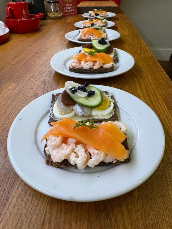 Be it Danish smørrebrød, Finnish voileipäkakku or any host of smörgåsbord items, we usually all help contribute at least something, then sit together and enjoy.