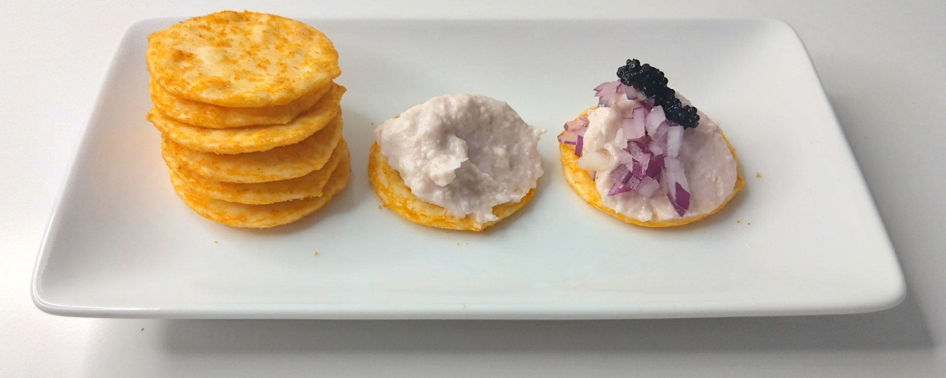 - Bitesize rice crackers (or equivalent canapé base such as croustade, blini, cucumber road, toast etc)