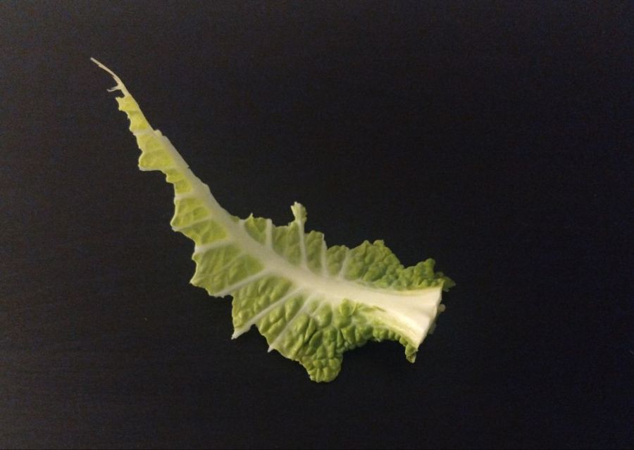 I discard the outer leaves for this dish. You can then either peel each leaf off and tear it into bitesize pieces, discarding the harder core elements (or just chewing them on your own).
