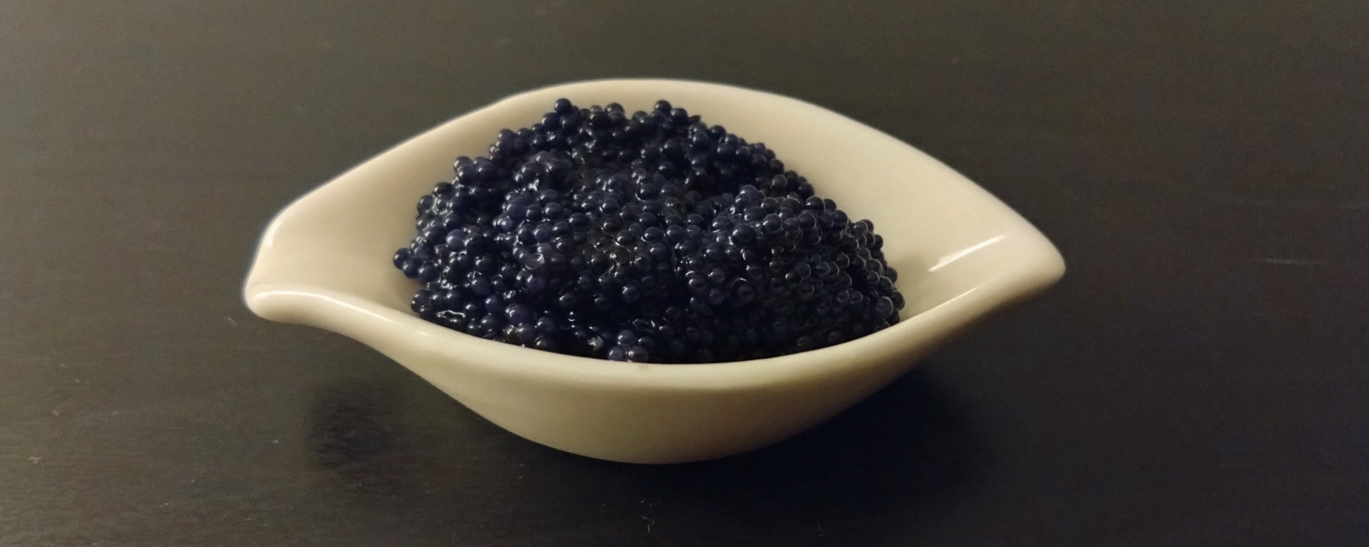 It makes a gorgeous garnish for cocktail canapés, blini or smørrebrød. It also fills the elite ranks of black coloured food.