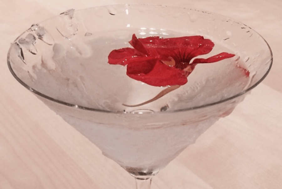 This is a really simple take on the classic martini. You add a dash of Tabasco Sauce to taste and garnish, if not with a twist of lemon peel, some form of pepper, roasted or preserved, or even an elegant,peppery nasturtium flower as above. Delicious!