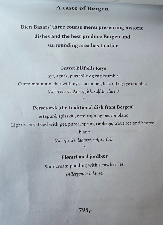 I was wandering around the wood-scented backstreets of Bryggen when I saw what looked like a well-established bistro-style restaurant.