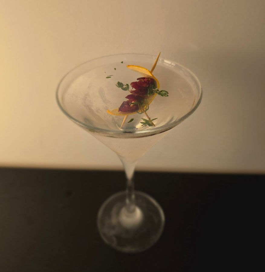 You then pour the drink, and garnish it with something seasonal, colourful and tasty.