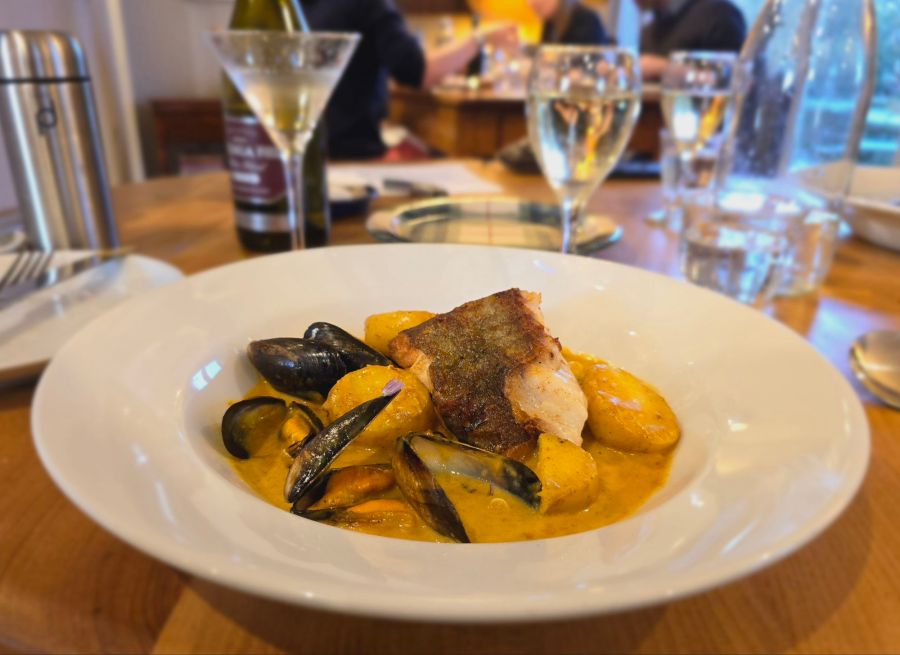 This was a hefty roasted cod on a bed of curried Inverlussa mussels at Ar Bòrd. Absolutely delicious, supremely comforting and very nice alongside a cold, silver bullet I brought as my BYOB.