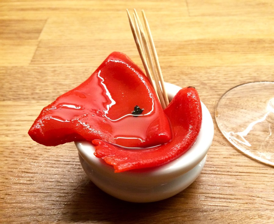 My favourite garnish is a roasted and preserved pimiento piquillo pepper, not just for their smokey, sweet-spicy flavour, but also their arresting colour.