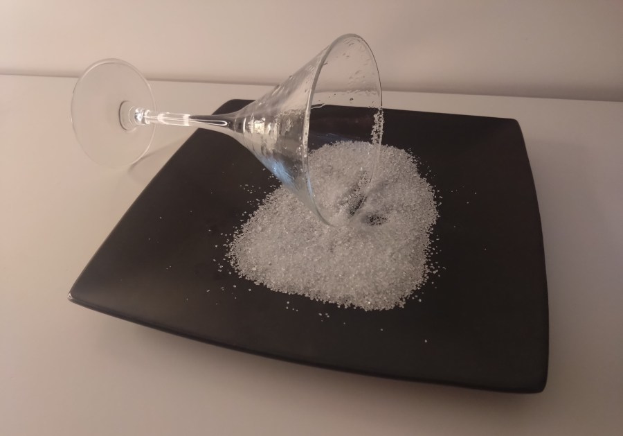 Sprinkle some sugar on a plate and use it to rim the glass.